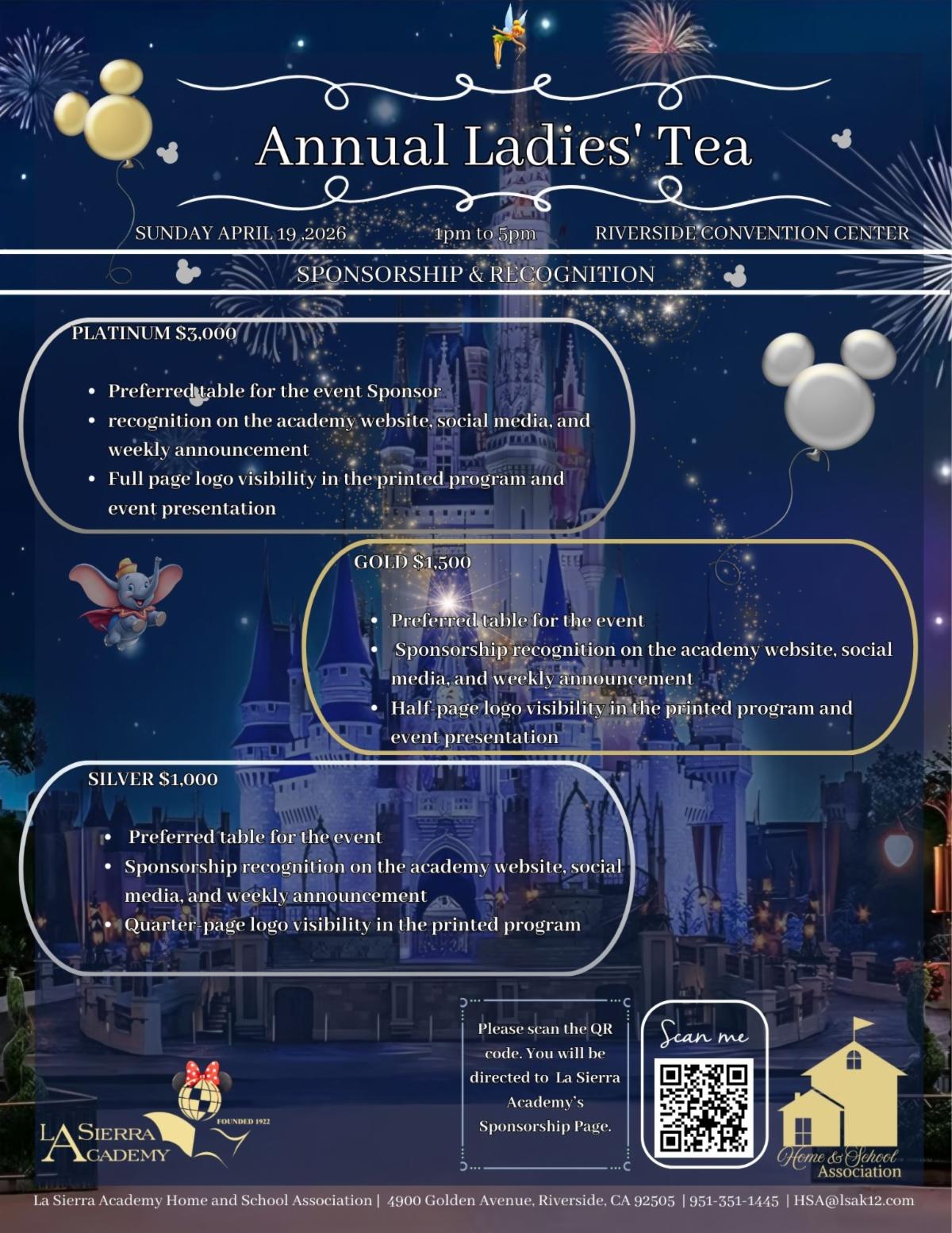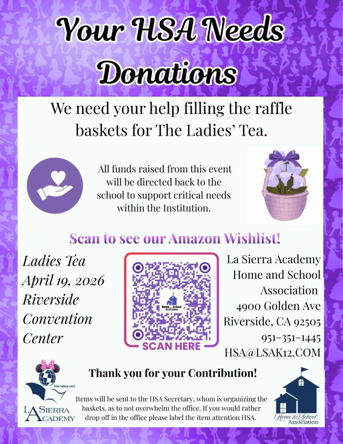 An HSA fundraising event to benefit La Sierra Academy. We solicit donations and sponsorships from local businesses. We have live and silent auctions such as reserved parking spaces, reserved graduation seats, and free one month tuition voucher, just to name a few.